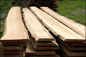 Kalmarbrædder, planker og stolper i dansk lærketræ sælges fra savværk