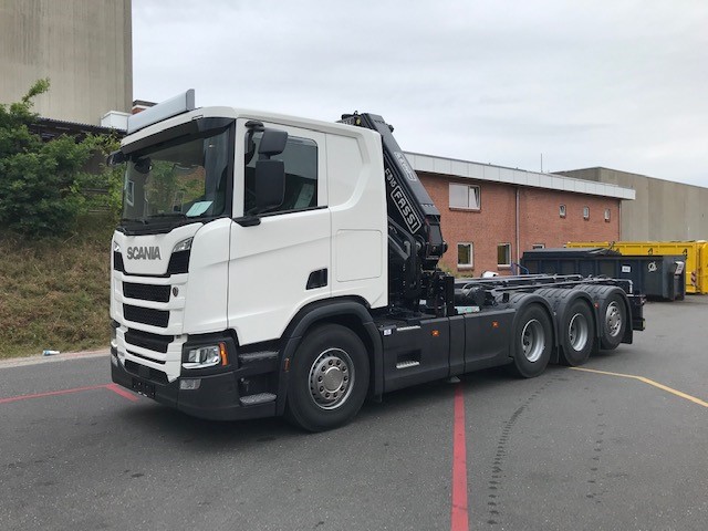 Fabriksny SCANIA opbygget med HMF 3 vejs wirehejs samt FASSI F315 kran.