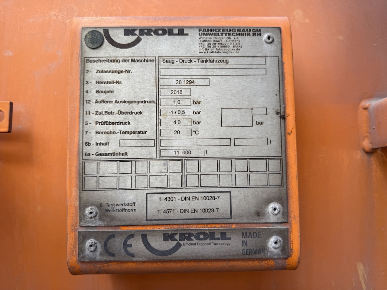 Kroll combi, stempeltank med 3 dorne, kassettesug samt svingbar sugetromle, vakuum pumpe CVS W1600, spule pumpe Uraca KD718G60, 330L, 170 bar, 110 kW.