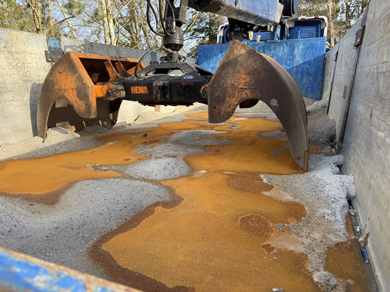 Hema grab med aftagelig sider ca. 3 år gammel, komplet metallak også på kran samt metallisering afundervogn og opbygning, custom made opbygning med mange finesser på opbygning og i førerhuset, Hejselad med Hardox bund og aut. luftbagsmæk. Hydraulisk udskudskofanger. Ny kobling i november 2025, slideklodser er skiftet i kran. Har lidt småskeder med er i god brugbar stand.