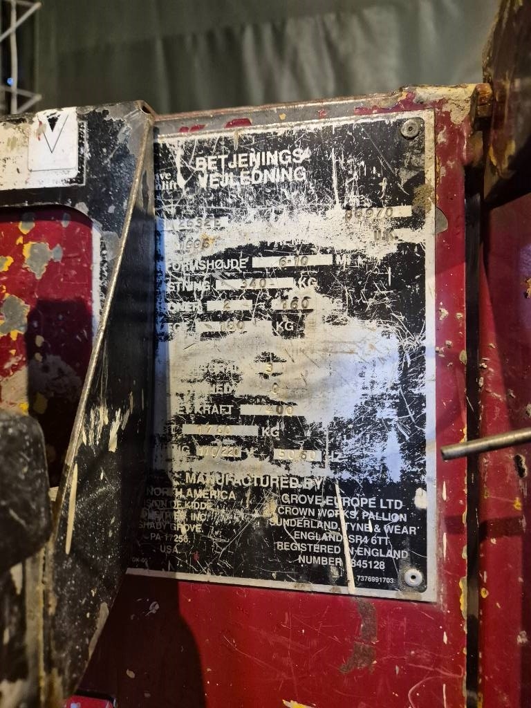 Mærke Grove. Model 6-10 meter 2 pers lift. Årgang 1995.