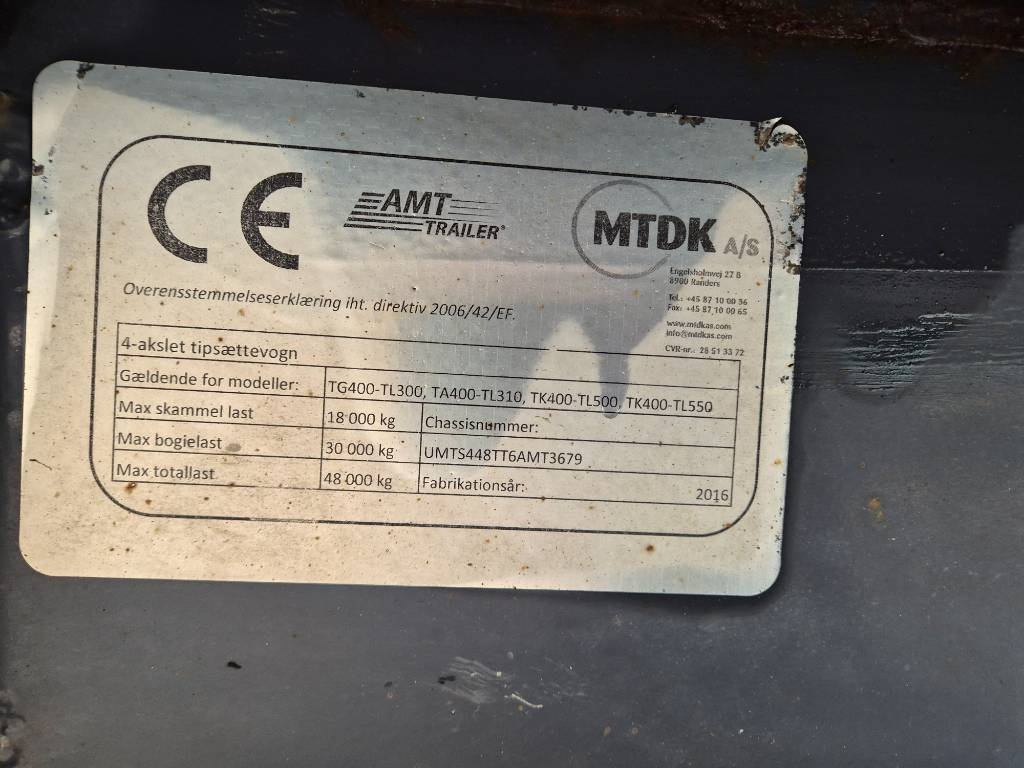 Mærke MTDK. Model TK400 4 akslet/axle tipper / 61m3. Årgang 2016.